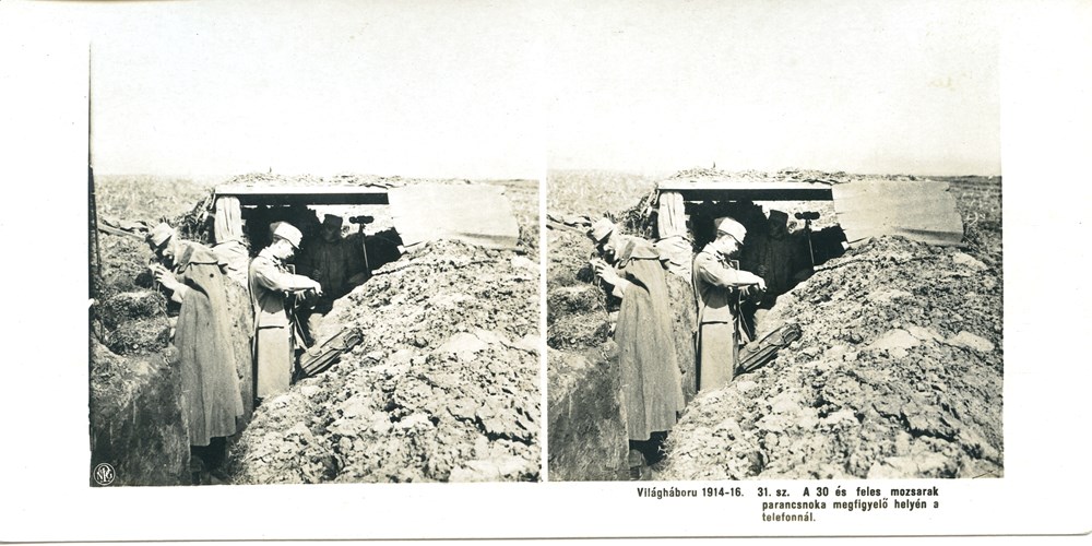 "A 30 és feles mozsarak parancsnoka megfigyel? helyén a telefonnál" - Commander of 30.5 cm mortars at an observation post on the phone