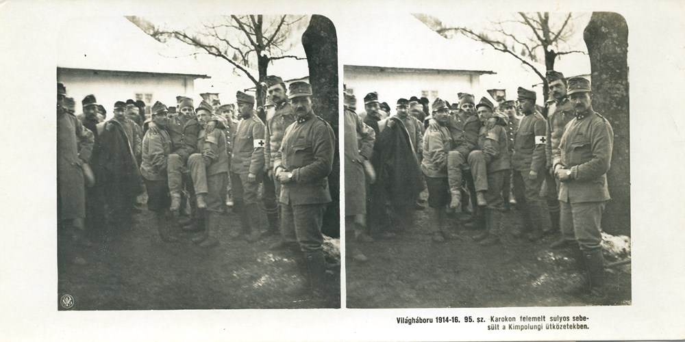 "Karokon felemelt sulyos sebesült a Kimpolungi ütközetekben" - Arm-lifting a seriously-wounded soldier of the battles of Câmpulung