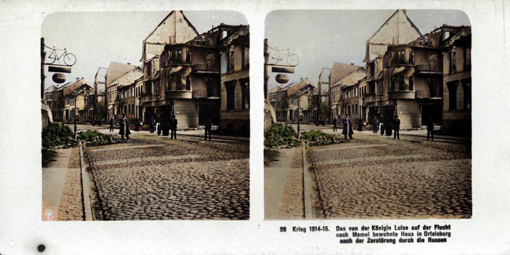 "Das von der Königin Luise auf der Flucht nach Memel bewohnte Haus in Ortelsburg nach der Zerstörung durch die Russen" - The house in Ortelsburg inhabited by Queen Luise on the run to Memel after it was destroyed by the Russians