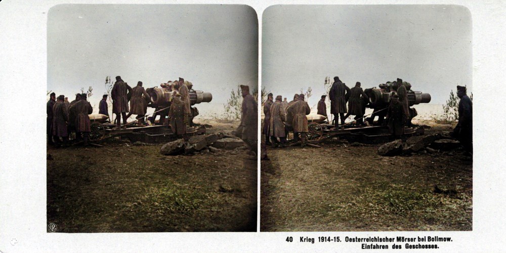 "Oesterreichischer Mörser bei Bolimow. Einfahren des Geschosses" - Austrian mortar near Bolimow. Retraction of the projectile