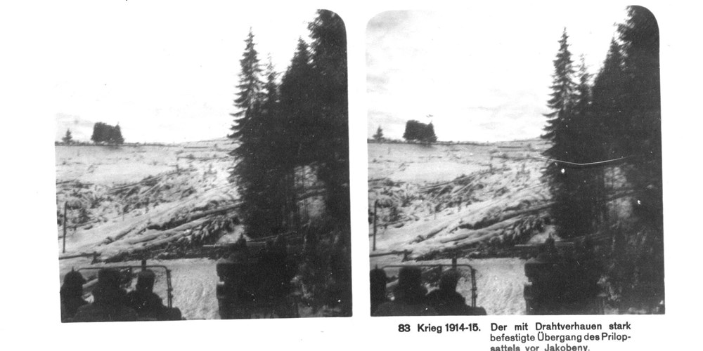 "Der mit Drahtverhauen stark befestigte Übergang des Prilopsattels vor Jakobeny" - The junction of the Prilop saddle in front of Jakobeny, which is strongly secured with wire entanglement