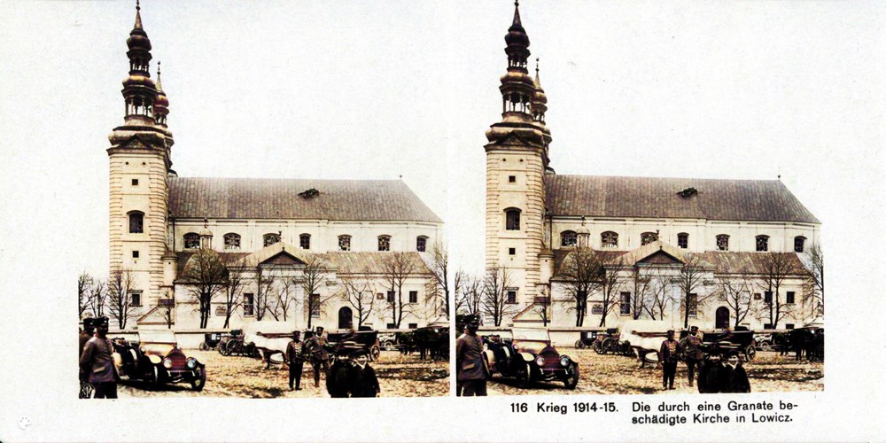 "Die durch eine Granate beschädige Kirche in Lowicz" - The church in Lowicz damaged by a grenade