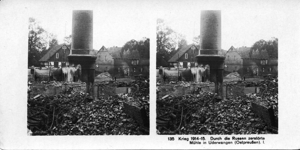 "Durch die Russen zerstörte Mühle in Uderwangen (Ostpreußen) I" - Mill in Uderwangen (East Prussia) I destroyed by the Russians