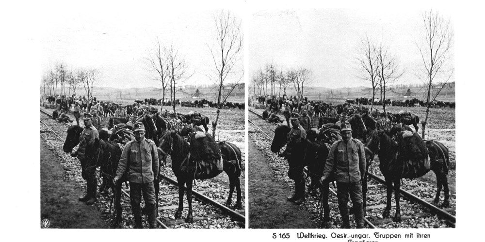 "Oestr.-ungar. Truppen mit ihren Tragtieren" - Oestr.-hungary. Troops with their pack animals