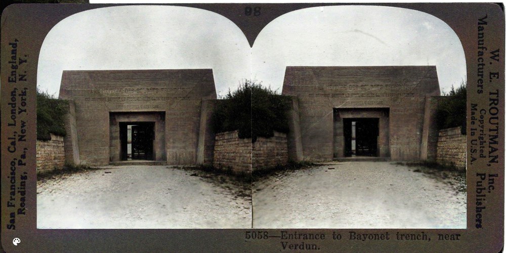 see also: https://www.atlasobscura.com/places/trench-bayonets ; http://www.worldwar1.com/heritage/bayonet.htm; https://www.tripadvisor.com/Attraction_Review-g187165-d3227583-Reviews-Trench_of_the_Bayonets-Verdun_Meuse_Grand_Est.htmlImage Id: 2494 Contributor: The Jordan/Ference Collection Theatre: Post-War Subject: Cemeteries & Monuments Location: Bayonet Trench, Verdun, France Regiment: Unknown Service Arm: Unknown Battle: Unknown Date: Unknown Combatants: Unknown Publisher: W. E. Troutman Source: American Directory: 1-100