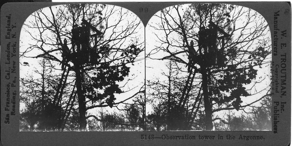 Image Id: 2495 Contributor: The Jordan/Ference Collection Theatre: Western Front Subject: The Front Line Location: Argonne, France Regiment: Unknown Service Arm: Artillery Spotters Battle: Unknown Date: Unknown Combatants: Unknown Publisher: W. E. Troutman Source: American Directory: 1-100