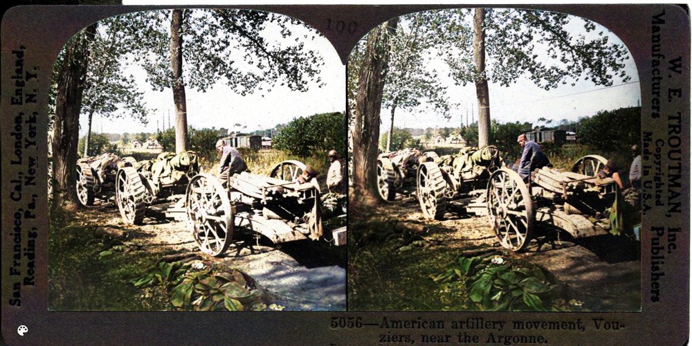 Image Id: 2496 Contributor: The Jordan/Ference Collection Theatre: Western Front Subject: Behind the Lines Location: Vouziers, Argonne, France Regiment: Unknown Service Arm: Field Artillery Battle: Unknown Date: 1917-1918 Combatants: American Publisher: W. E. Troutman Source: American Directory: 1-100