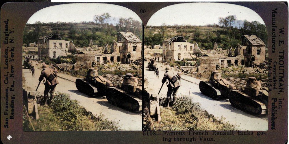 Image Id: 2497 Contributor: The Jordan/Ference Collection Theatre: Western Front Subject: Behind the Lines Location: Vaux, Allier, France Regiment: Unknown Service Arm: Tanks/Armoured Cars Battle: Unknown Date: Unknown Combatants: Unknown Publisher: W. E. Troutman Source: American Directory: 1-100