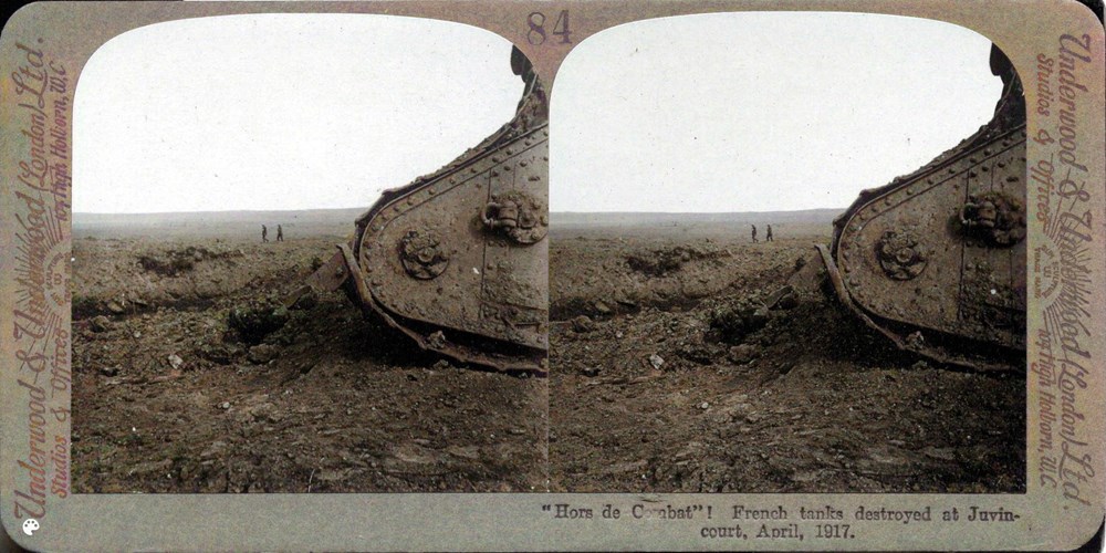 "Hors de Combat"! French tanks destroyed at Juvincourt, April, 1917