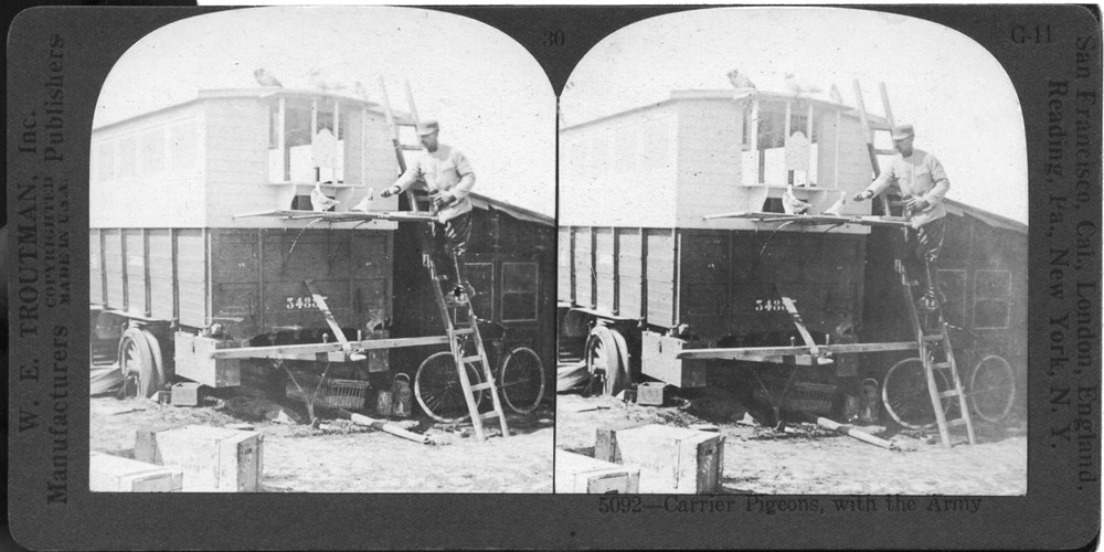 Signalling via pigeonsImage Id: 2532 Contributor: The Jordan/Ference Collection Theatre: Western Front Subject: Behind the Lines Location: France Regiment: Unknown Service Arm: Infantry Battle: Unknown Date: Unknown Combatants: French Publisher: W. E. Troutman Source: American Directory: 1-100