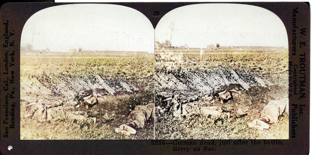 Image Id: 2541 Contributor: The Jordan/Ference Collection Theatre: Western Front Subject: Battle Aftermath Location: Berry au Bac, Aisne, France Regiment: Unknown Service Arm: Unknown Battle: Berry au Bac Date: 7 October 1918 Combatants: German Publisher: W. E. Troutman Source: American Directory: 1-100