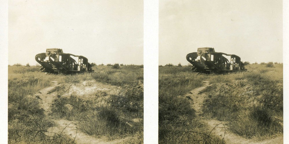 Image Id: 256 Contributor: The Jordan/Ference Collection Theatre: Post-War Subject: Battle Aftermath Location: Langemarck, Belgium Regiment: Unknown Service Arm: Tanks/Armoured Cars Battle: Unknown Date: Unknown Combatants: Unknown Publisher: George Nightingale & Co Source: British Directory: Battlefield Series 2