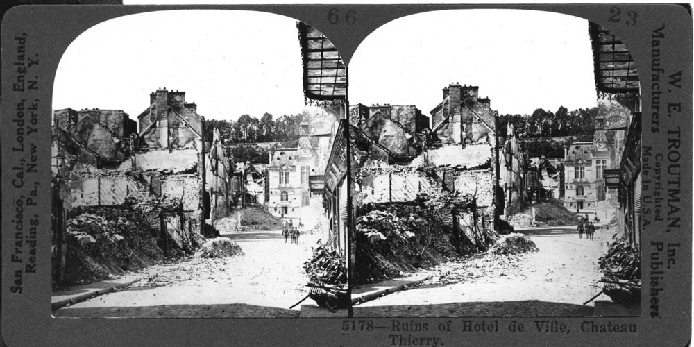 Image Id: 2568 Contributor: The Jordan/Ference Collection Theatre: Western Front Subject: Battle Aftermath Location: Town hall, Chateau Thierry, Aisne, France Regiment: Unknown Service Arm: Unknown Battle: Unknown Date: Unknown Combatants: Unknown Publisher: W. E. Troutman Source: American Directory: 1-100