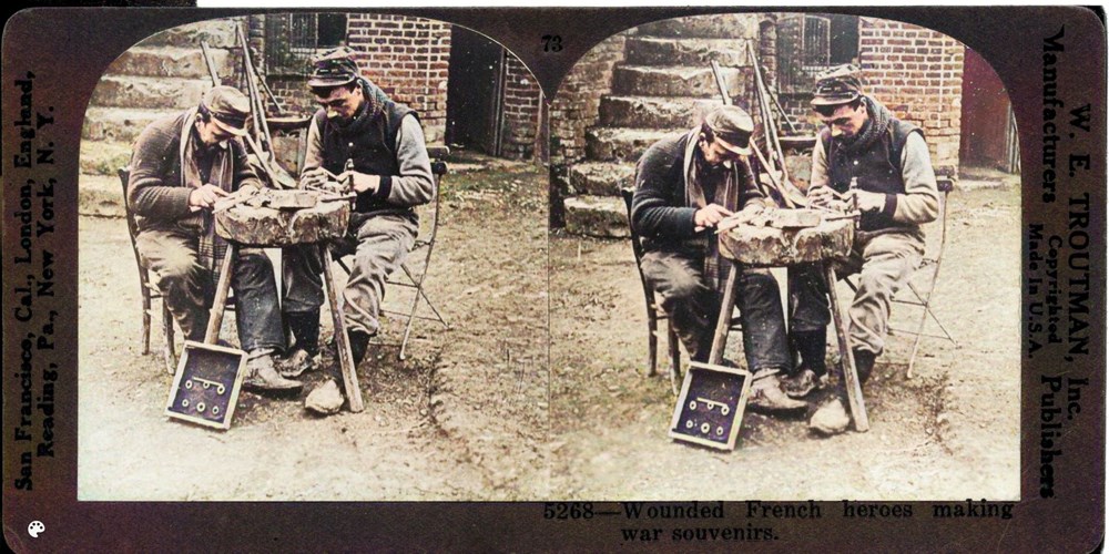 Wounded French heroes making war souvenirs
