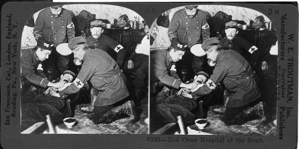Image Id: 2583 Contributor: The Jordan/Ference Collection Theatre: Western Front Subject: Medical Scenes Location: France Regiment: Unknown Service Arm: Medical Services Battle: Unknown Date: Unknown Combatants: Red Cross Publisher: W. E. Troutman Source: American Directory: 1-100