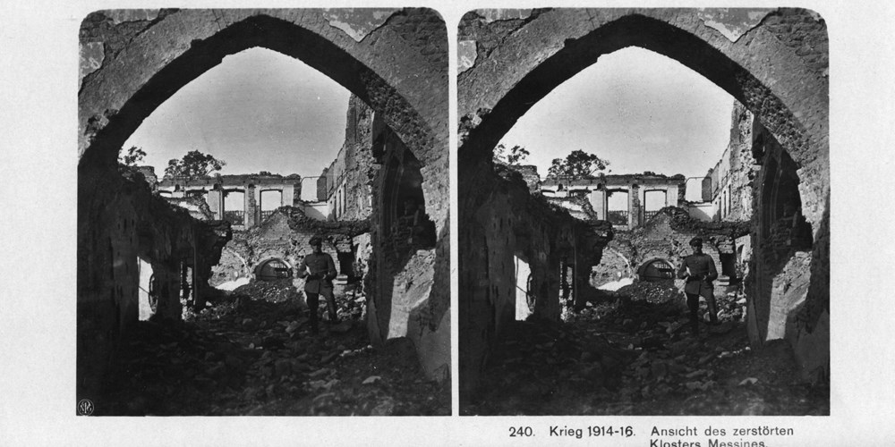 "Ansicht des zerstörten Klosters Messines" - View of the destroyed Messines monastery