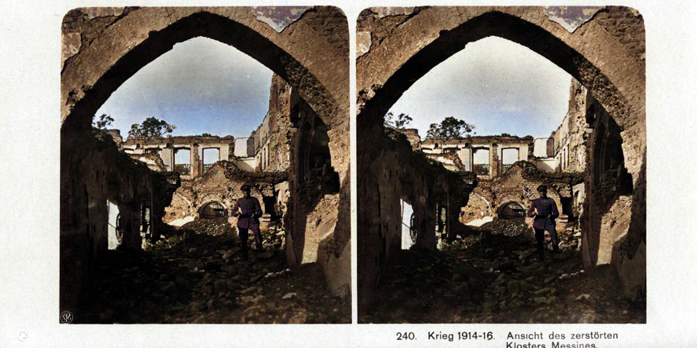 "Ansicht des zerstörten Klosters Messines" - View of the destroyed Messines monastery