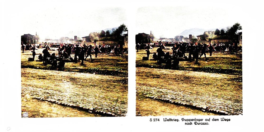 "Truppenlager auf dem Wege nach Durazzo" - Troop camp on the way to Durazzo