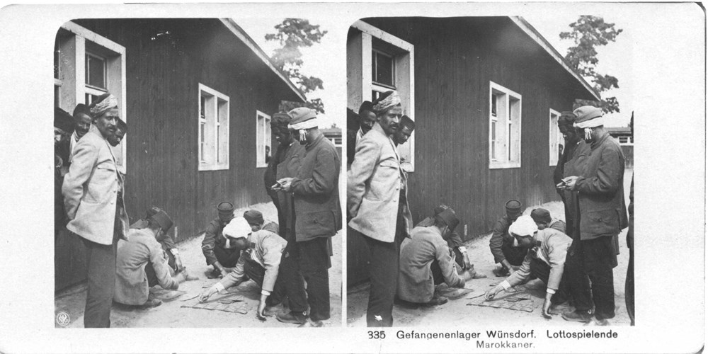 Image Id: 2670 Contributor: The Jordan/Ference Collection Theatre: Home Front Subject: Prisoners Location: Wunsdorf, Germany Regiment: Unknown Service Arm: Unknown Battle: Unknown Date: Unknown Combatants: Moroccan Publisher: Neue Photographische Gesellschaft (NPG) Source: German Directory: NPG(G) 301-400