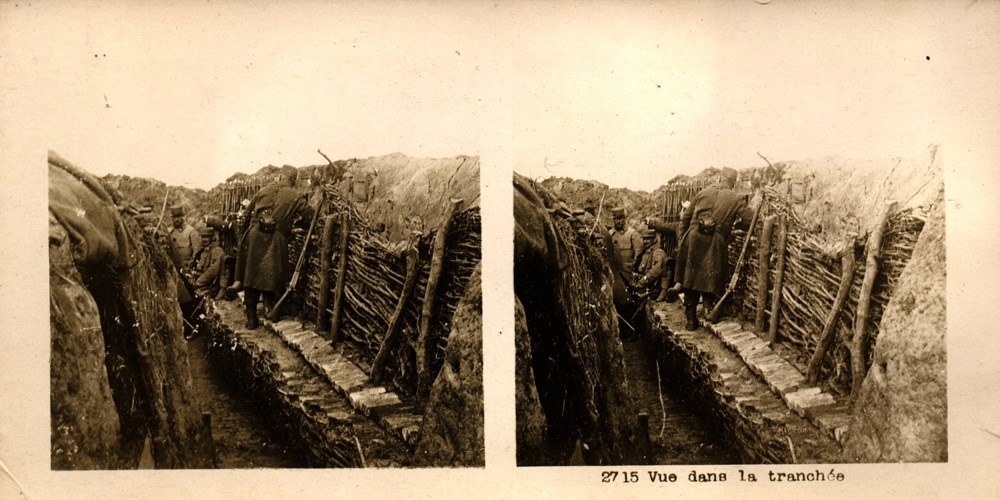 Image Id: 2676 Contributor: The Jordan/Ference Collection Theatre: Western Front Subject: The Front Line Location: Unknown Regiment: Unknown Service Arm: Infantry Battle: Unknown Date: Unknown Combatants: French Publisher: Paris-Stéréo Source: French Directory: 2701-2800