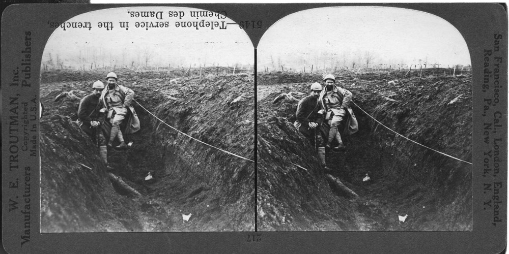 Image Id: 2752 Contributor: The Jordan/Ference Collection Theatre: Western Front Subject: The Front Line Location: Chemin des Dames, France Regiment: Unknown Service Arm: Signal Corps Battle: Unknown Date: Unknown Combatants: French Publisher: W. E. Troutman Source: American Directory: 201-300
