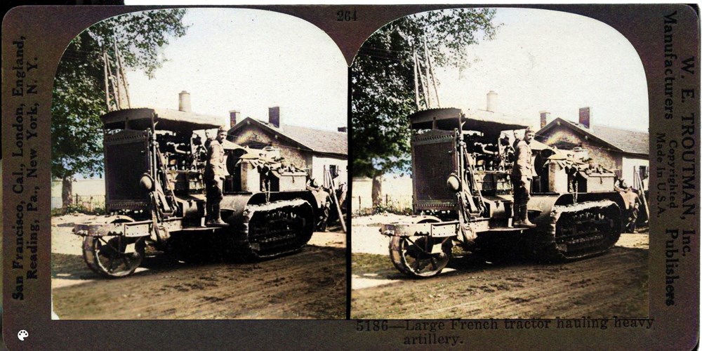Large French tractor hauling heavy artillery