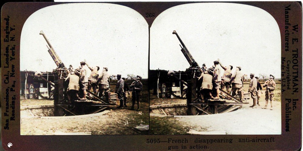 Image Id: 2795 Contributor: The Jordan/Ference Collection Theatre: Western Front Subject: The Gun Line Location: Unknown Regiment: Unknown Service Arm: Anti-Aircraft Artillery Battle: Unknown Date: Unknown Combatants: French Publisher: W. E. Troutman Source: American Directory: 201-300