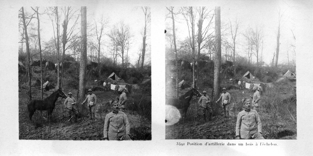 "Position d'artillerie dans un bois à l'échelon" - An artillery position in a wood arranged in echelon