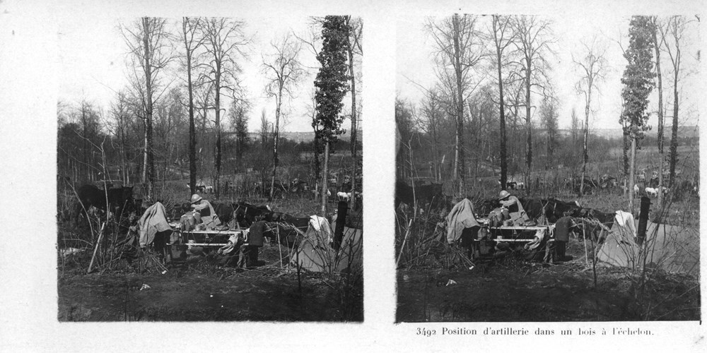 "Position d'artillerie dans un bois à l'échelon" - An artillery position in a wood arranged in echelon