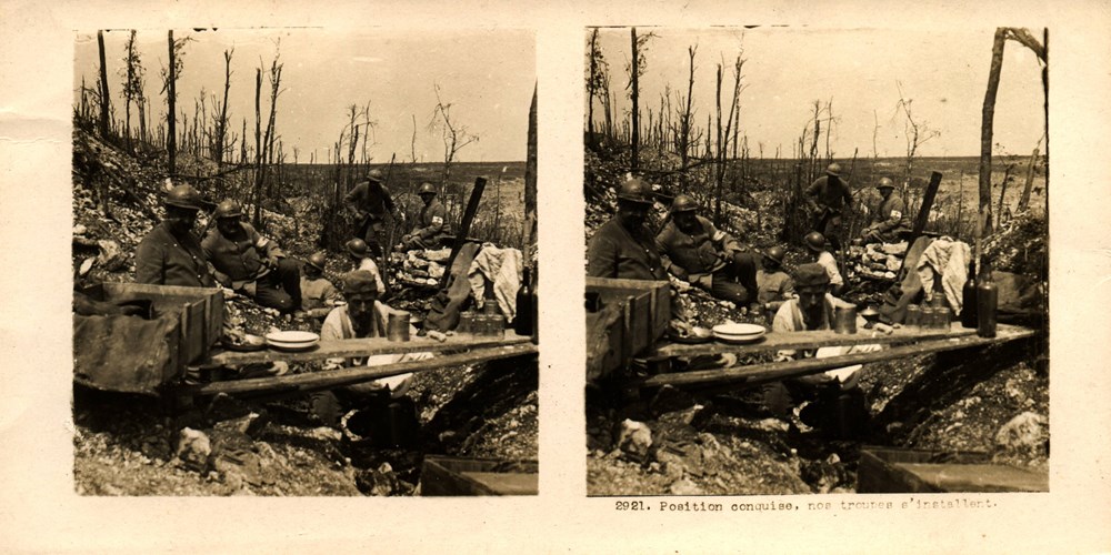 Image Id: 2857 Contributor: The Jordan/Ference Collection Theatre: Western Front Subject: The Front Line Location: Unknown Regiment: Unknown Service Arm: Infantry Battle: Unknown Date: Unknown Combatants: French Publisher: Paris-Stéréo Source: French Directory: 2901 Plus