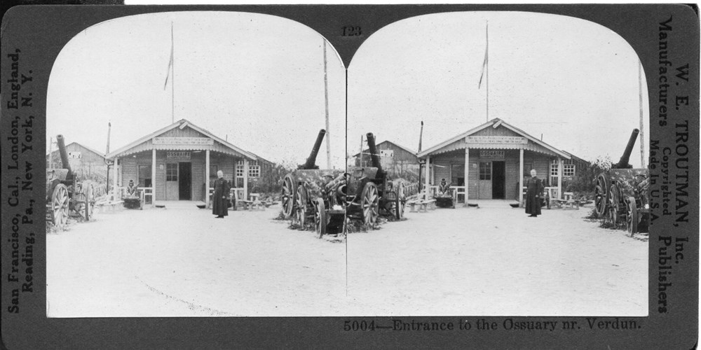 Image Id: 2896 Contributor: The Jordan/Ference Collection Theatre: Post-War Subject: Cemeteries & Monuments Location: Douaumont,Verdun Regiment: Unknown Service Arm: Civilians Battle: Unknown Date: Unknown Combatants: Unknown Publisher: W. E. Troutman Source: American Directory: 101-200