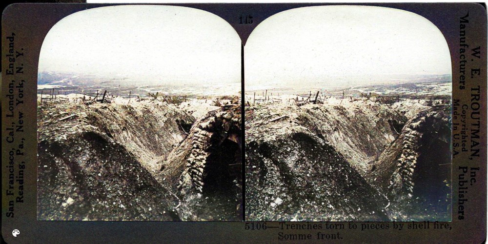 Image Id: 2916 Contributor: The Jordan/Ference Collection Theatre: Western Front Subject: The Front Line Location: Somme,France Regiment: Unknown Service Arm: Unknown Battle: Unknown Date: Unknown Combatants: Unknown Publisher: W. E. Troutman Source: American Directory: 101-200
