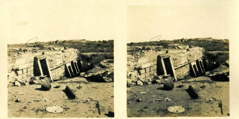 Big German dugout, Nieuport, solidly built of stone and covered with earth