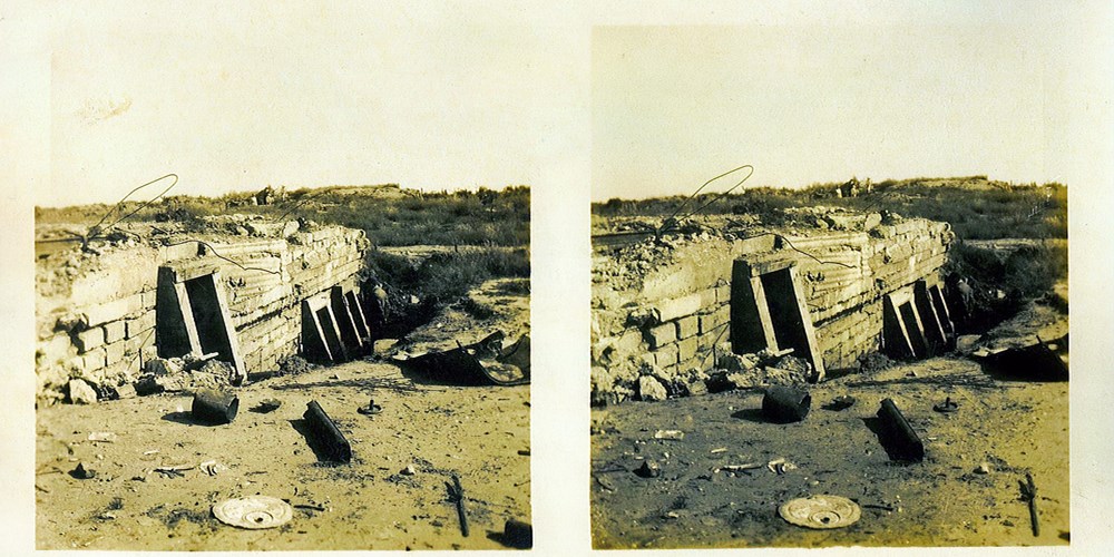 Big German dugout, Nieuport, solidly built of stone and covered with earth