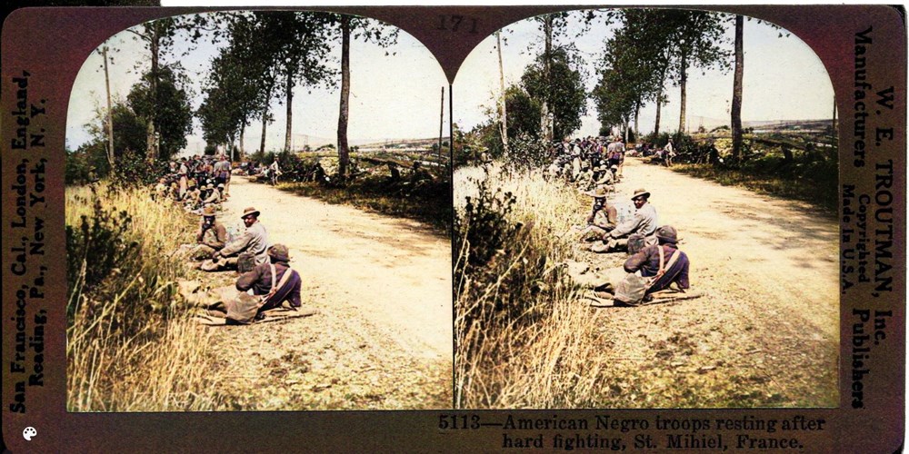 American Negro troops resting after hard fighting, St. Mihiel, France