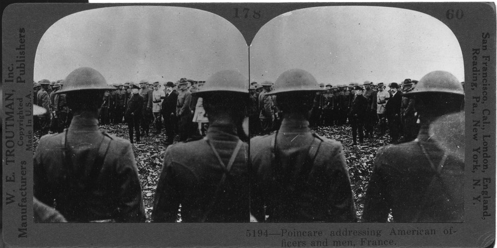 Image Id: 2949 Contributor: The Jordan/Ference Collection Theatre: Western Front Subject: Politicians & Dignitaries Location: France Regiment: Unknown Service Arm: Infantry Battle: Unknown Date: Sep 1917 Combatants: American/French Publisher: W. E. Troutman Source: American Directory: 101-200