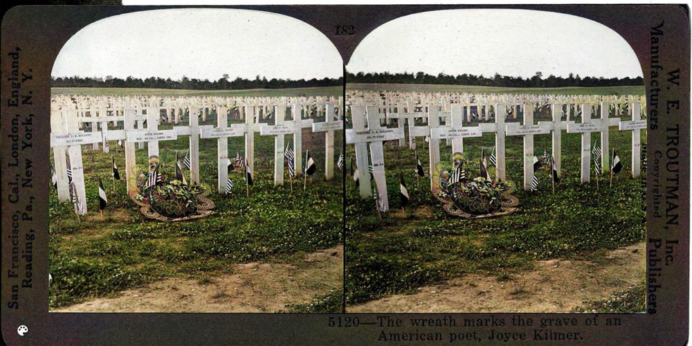 The wreath marks the grave of an American poet, Joyce Kilmer