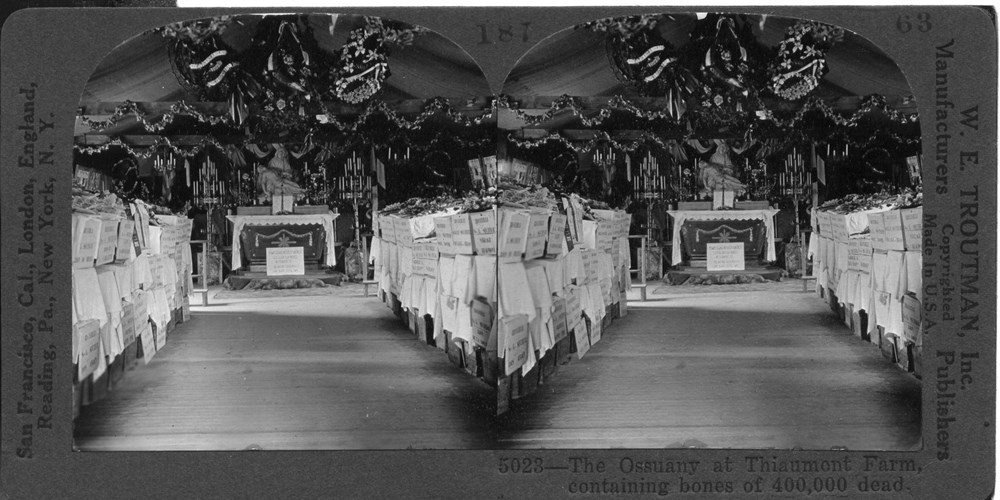 Image Id: 2958 Contributor: The Jordan/Ference Collection Theatre: Post-War Subject: Cemeteries & Monuments Location: Douaumont, Verdun, France Regiment: Unknown Service Arm: Unknown Battle: Unknown Date: Unknown Combatants: French Publisher: W. E. Troutman Source: American Directory: 101-200