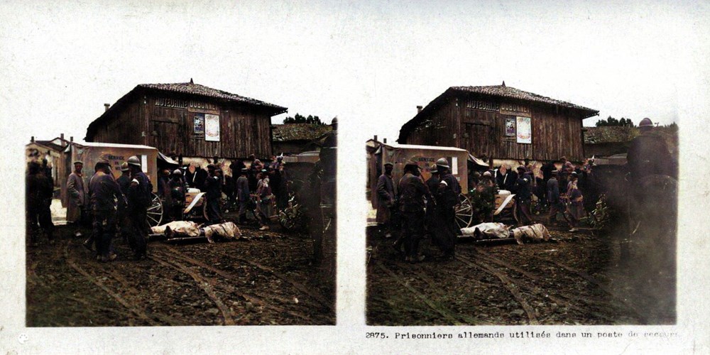 Image Id: 2973 Contributor: The Jordan/Ference Collection Theatre: Western Front Subject: Prisoners Location: France Regiment: Unknown Service Arm: Medical Services Battle: Unknown Date: Unknown Combatants: French/German Publisher: Paris-Stéréo Source: French Directory: 2801-2900