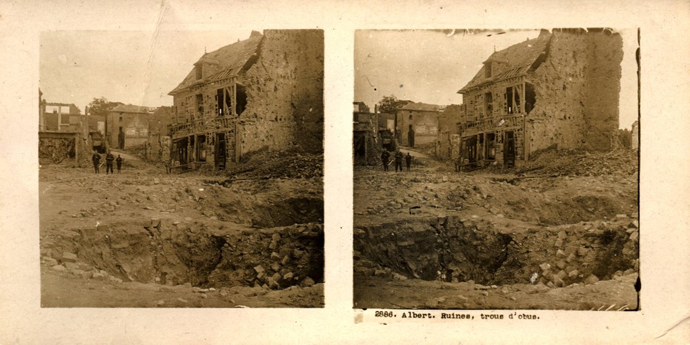Image Id: 2980 Contributor: The Jordan/Ference Collection Theatre: Western Front Subject: Townscape Location: Albert, Somme, France Regiment: Unknown Service Arm: Unknown Battle: Unknown Date: Unknown Combatants: Unknown Publisher: Paris-Stéréo Source: French Directory: 2801-2900