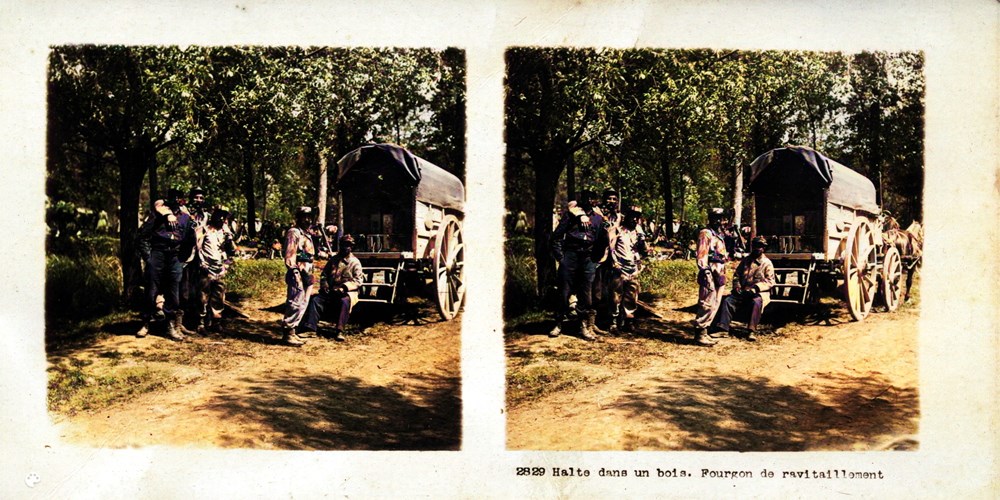 "Halte dans un bois. Fourgon de ravitaillement" - Halt in the woods. Supply van