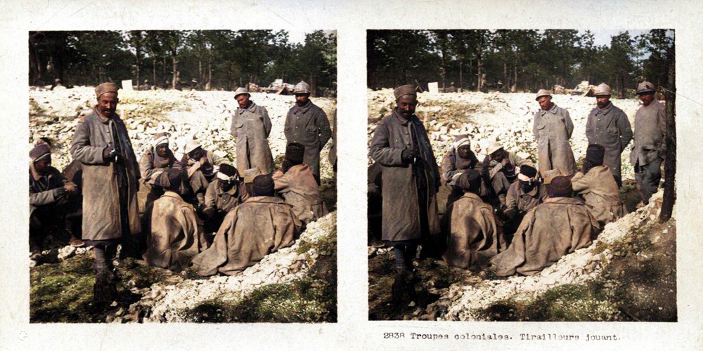 Image Id: 3007 Contributor: The Jordan/Ference Collection Theatre: Western Front Subject: Behind the Lines Location: France Regiment: Unknown Service Arm: Infantry Battle: Unknown Date: Unknown Combatants: French Colonial Publisher: Paris-Stéréo Source: French Directory: 2801-2900