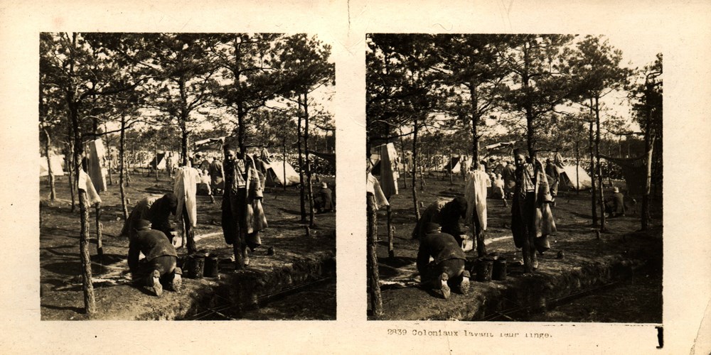 Image Id: 3008 Contributor: The Jordan/Ference Collection Theatre: Western Front Subject: Behind the Lines Location: France Regiment: Unknown Service Arm: Infantry Battle: Unknown Date: Unknown Combatants: French Colonial Publisher: Paris-Stéréo Source: French Directory: 2801-2900