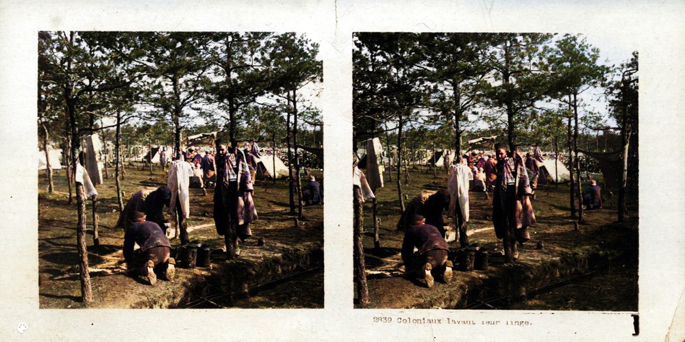Image Id: 3008 Contributor: The Jordan/Ference Collection Theatre: Western Front Subject: Behind the Lines Location: France Regiment: Unknown Service Arm: Infantry Battle: Unknown Date: Unknown Combatants: French Colonial Publisher: Paris-Stéréo Source: French Directory: 2801-2900