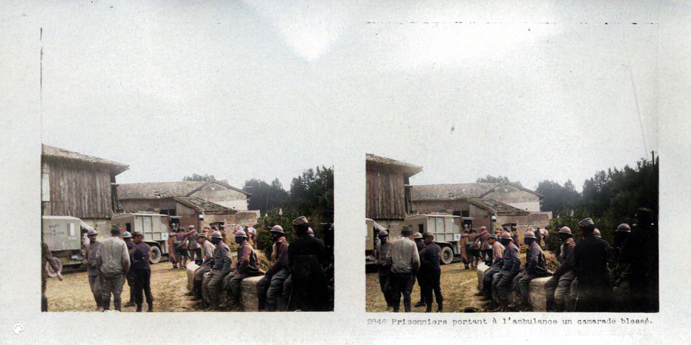 "Prisonniers portant à l'ambulance un camarade blessé" - Prisoners carrying a wounded comrade to the ambulance