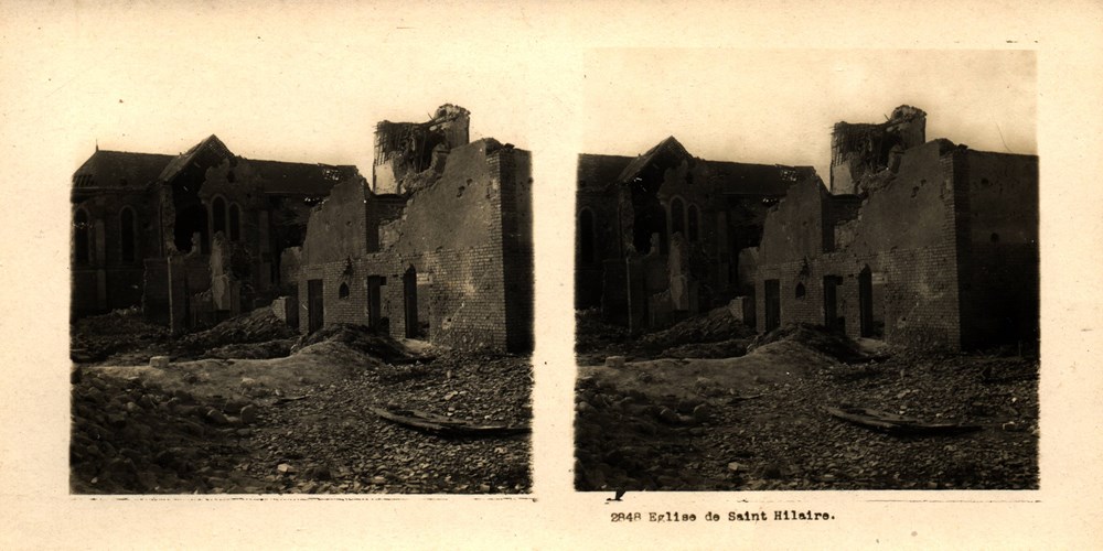 Image Id: 3015 Contributor: The Jordan/Ference Collection Theatre: Western Front Subject: Battle Aftermath Location: St Hilaire, Nord, France Regiment: Unknown Service Arm: Unknown Battle: Unknown Date: Unknown Combatants: Unknown Publisher: Paris-Stéréo Source: French Directory: 2801-2900