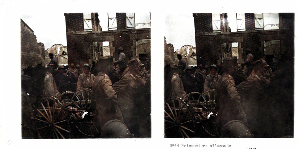 Image Id: 3028 Contributor: The Jordan/Ference Collection Theatre: Western Front Subject: Prisoners Location: France Regiment: Unknown Service Arm: Infantry Battle: Unknown Date: Unknown Combatants: French/German Publisher: Paris-Stéréo Source: French Directory: 2801-2900