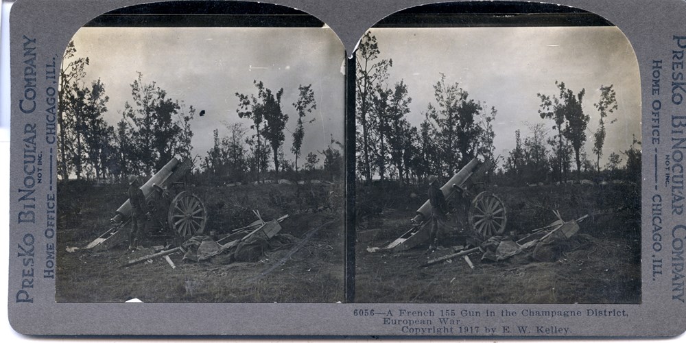 Image Id: 3036 Contributor: The Jordan/Ference Collection Theatre: Western Front Subject: The Front Line Location: Champagne, France Regiment: Unknown Service Arm: Field Artillery Battle: Unknown Date: Unknown Combatants: French Publisher: Presko Binocular Co Source: American Directory: PresKo