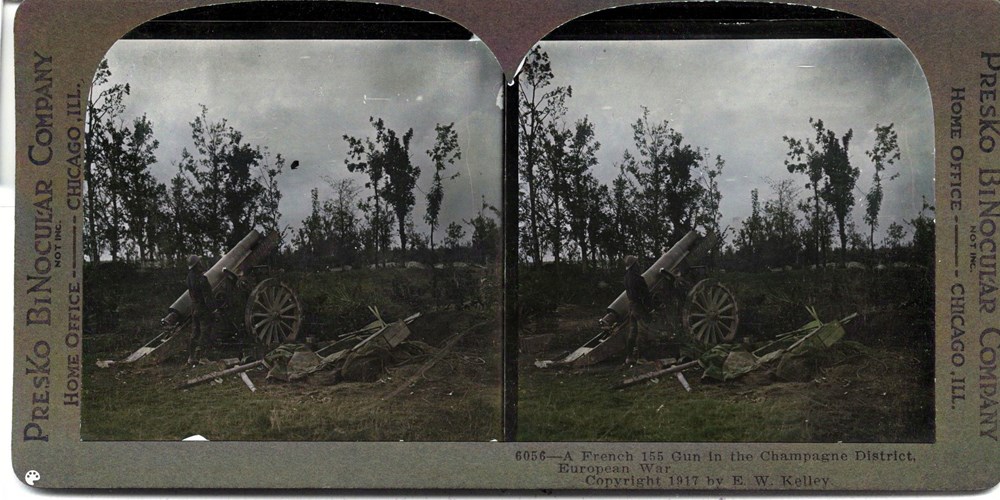 Image Id: 3036 Contributor: The Jordan/Ference Collection Theatre: Western Front Subject: The Front Line Location: Champagne, France Regiment: Unknown Service Arm: Field Artillery Battle: Unknown Date: Unknown Combatants: French Publisher: Presko Binocular Co Source: American Directory: PresKo