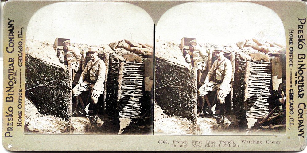 Image Id: 3039 Contributor: The Jordan/Ference Collection Theatre: Western Front Subject: The Front Line Location: Unknown Regiment: Unknown Service Arm: Infantry Battle: Unknown Date: Unknown Combatants: French Publisher: Presko Binocular Co Source: American Directory: PresKo